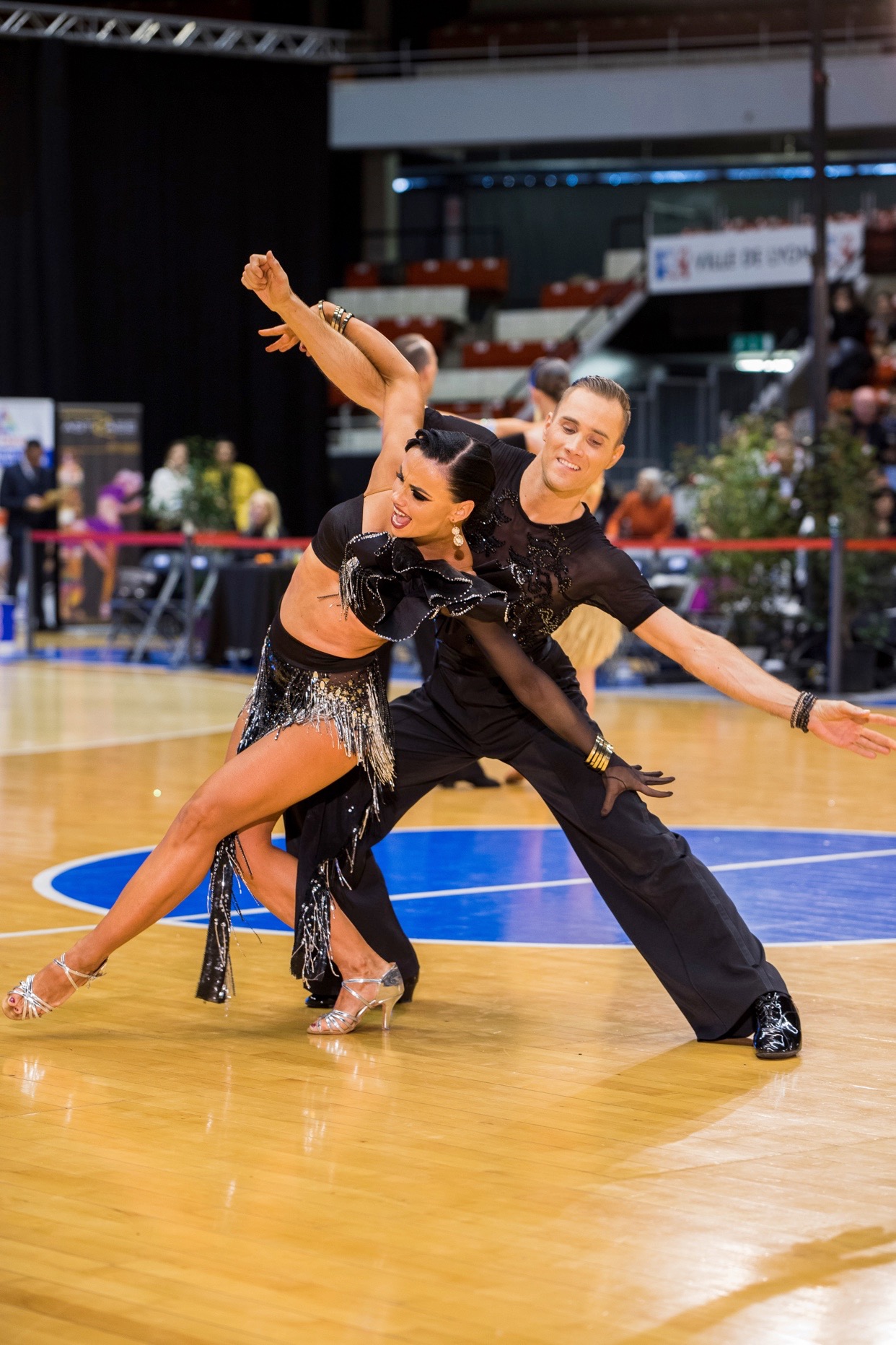 In einem wahren Turniermarathon welcher bereits um die Mittagsstunden begann hatten sich Erik und Julia von Runde zu Runde getanzt. Die quälend langen Pausen forderten ein Höchstmaß an Disziplin um die Konzentration und den Fokus zum richtigen Zeitpunkt zu wahren und pro Runde die jeweils beste Leistung zeigen zu können. Souverän meisterten Erik und Julia diese Aufgabe und kämpften sich so von Runde zu Runde. Während das Feld der Konkurrenten immer kleiner wurde zeigten Erik und Julia konstant hervorragende Leistungen und steigerten sich bis zum großen Finale. 10h nachdem das Turnier begonnen hatte folgte schließlich das furiose Finale. Angepeitscht von den vielen Mitgereisten Fans, Schlachtenbummlern und dem begeisterten französischen Publikum glich der Palais des Sports einem wahren Hexenkessel. Erik und Julia nutzten die Stimmung zu ihrem Vorteil und tanzten ein großartiges Finale. Nach 40 getanzten Tänzen war das Turnier beendet.
